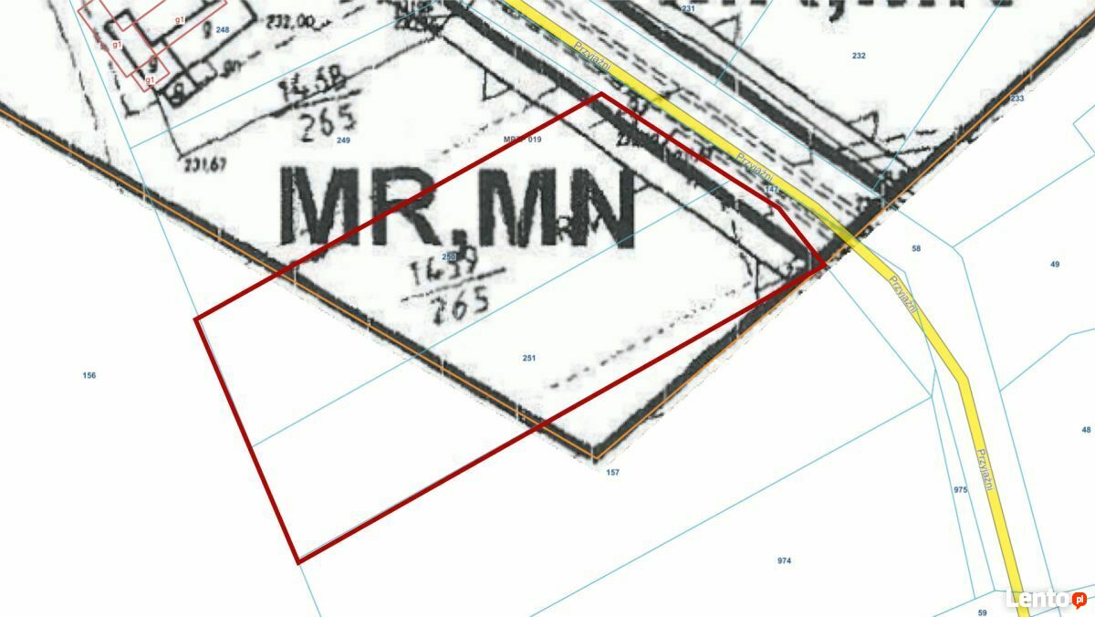 W miejscowym planie zagospodarowania przestrzennego działka oznaczona jest symbolem MR/MN (około 2330m2) czyli teren zabudowy mieszkaniowej jednorodzinnej i zagrodowej oraz usług komercyjnych i nieuciążliwej działalności gospodarcze, pozostała część działki znajduje się poza planem.